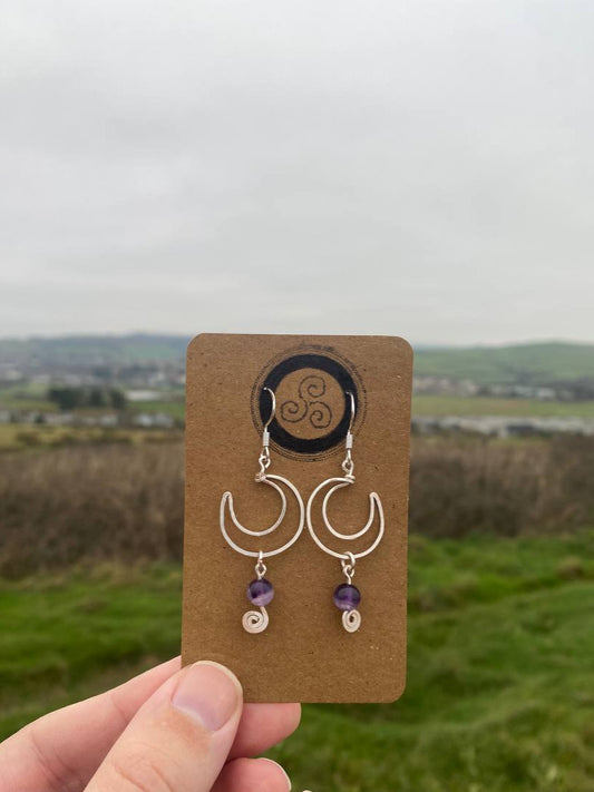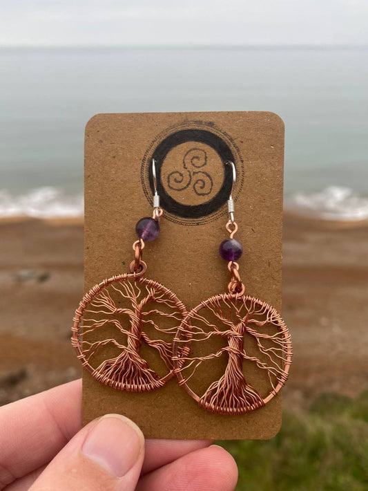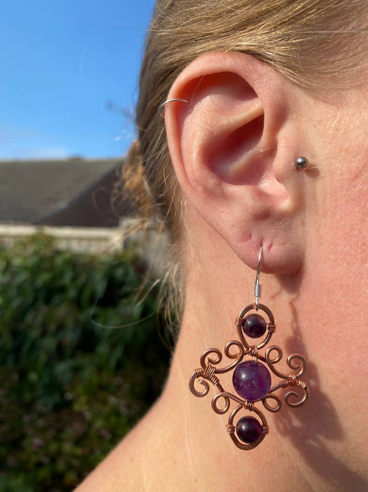 Amethyst and Fluorite Copper Earrings with Sterling Silver Hooks