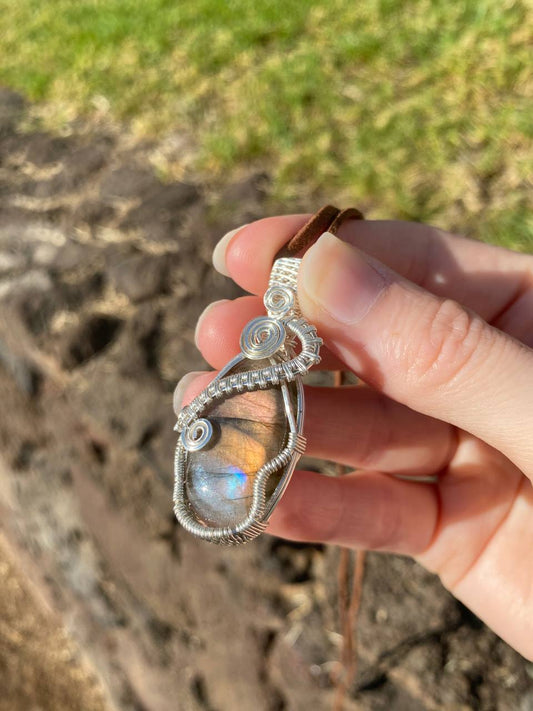 Labradorite Silver Plated Copper Wire Wrapped Pendant