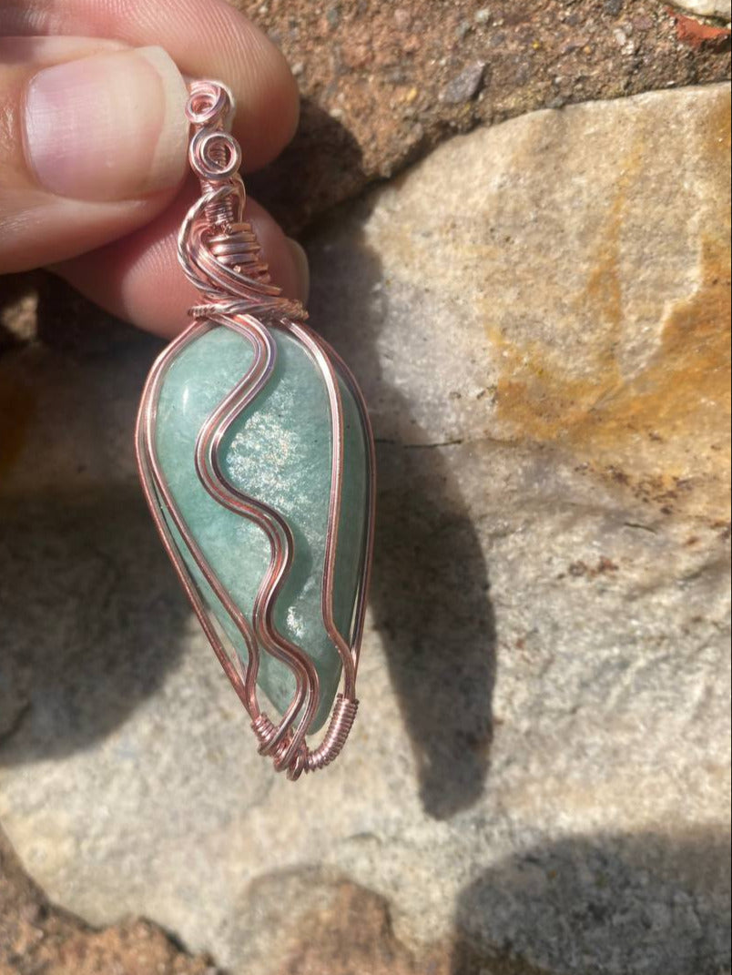 Handmade Amazonite Rose Gold Copper Wire Wrapped Pendant With Adjustable Waxed Brown Cotton Cord