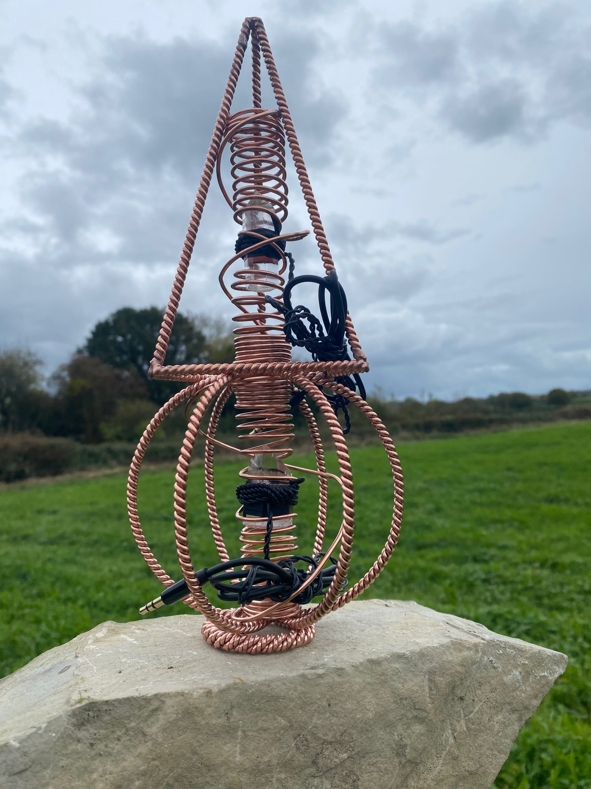 New Earth Cubit CloudBuster Pyramid Harmoniser with Two Clear Quartz Succor Punch Cores and a Triple Twisted New Earth Cubit Tensor Ring Base (432MHz)