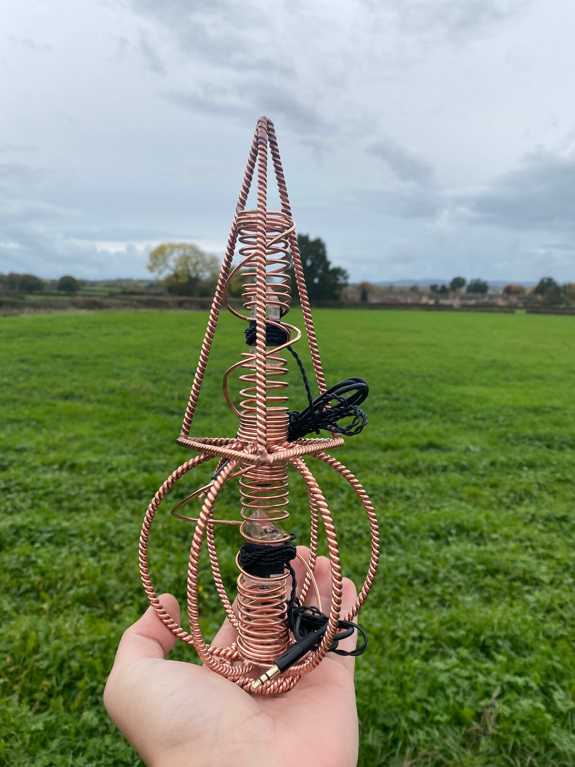 It produces a field of intention created by the user of the device, the crystal used, and the frequency chosen and is synchronised with the users electromagnetic field. The field is projected in all directions which affects all organisms and the environment for several miles.