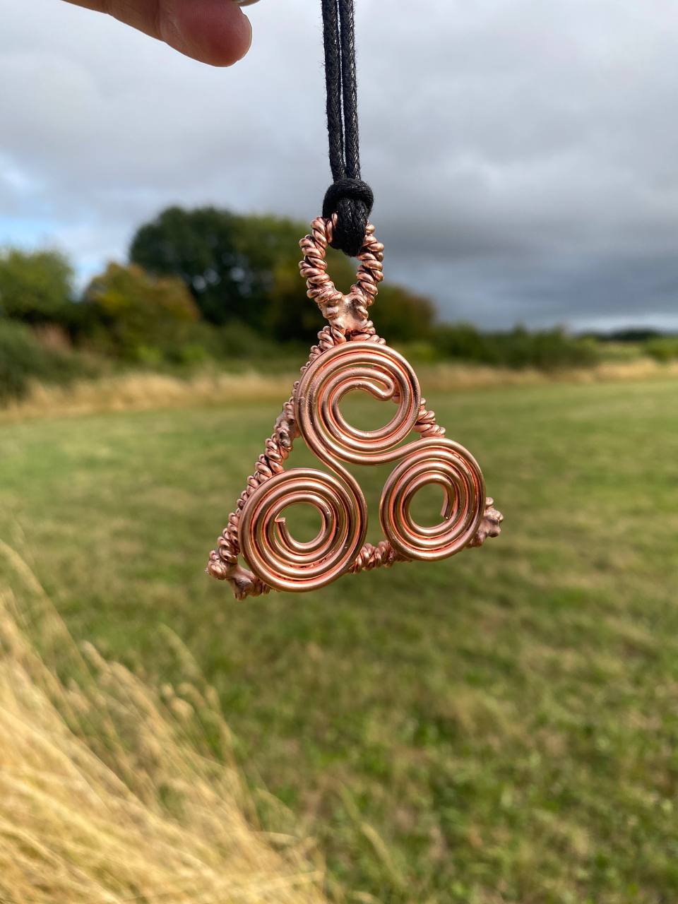 "Kingdom of Bards" Handcrafted Double Twisted Triangular Tensor Triskelion Scalar Amulet With Adjustable Black Cotton Cord