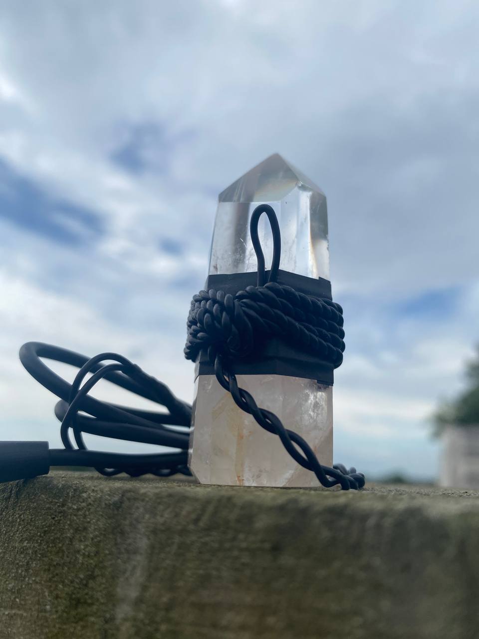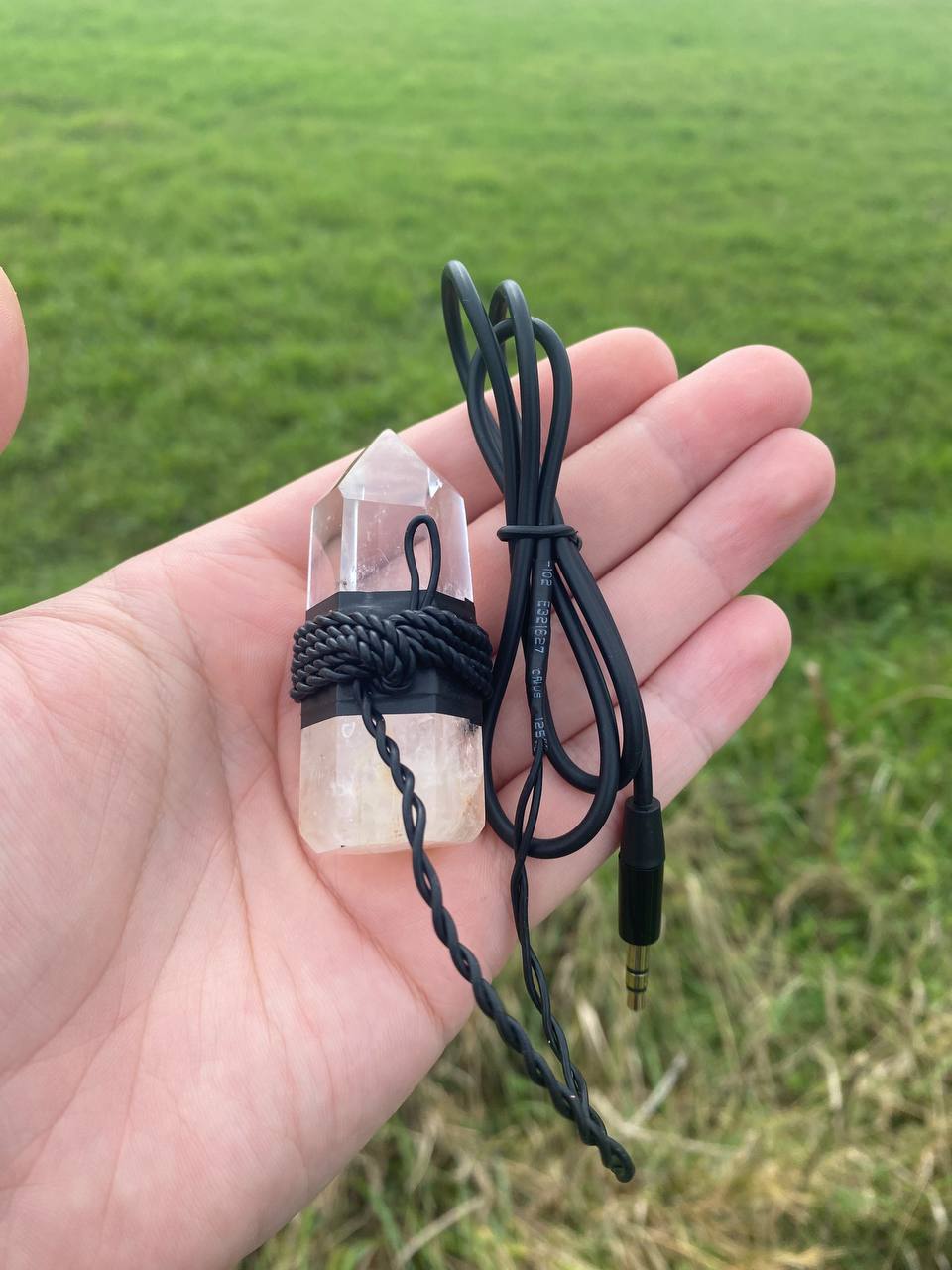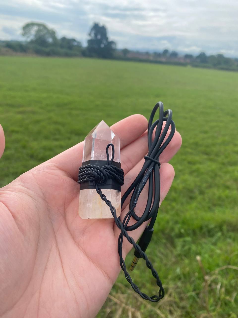 Medium Sized Clear Quartz Tower Succor Punch with Single Mobius Coil and 24K Gold Auxiliary Cable Attachment for Smartphone or Frequency Generator - Charged in the Ancient Isle of Avalon